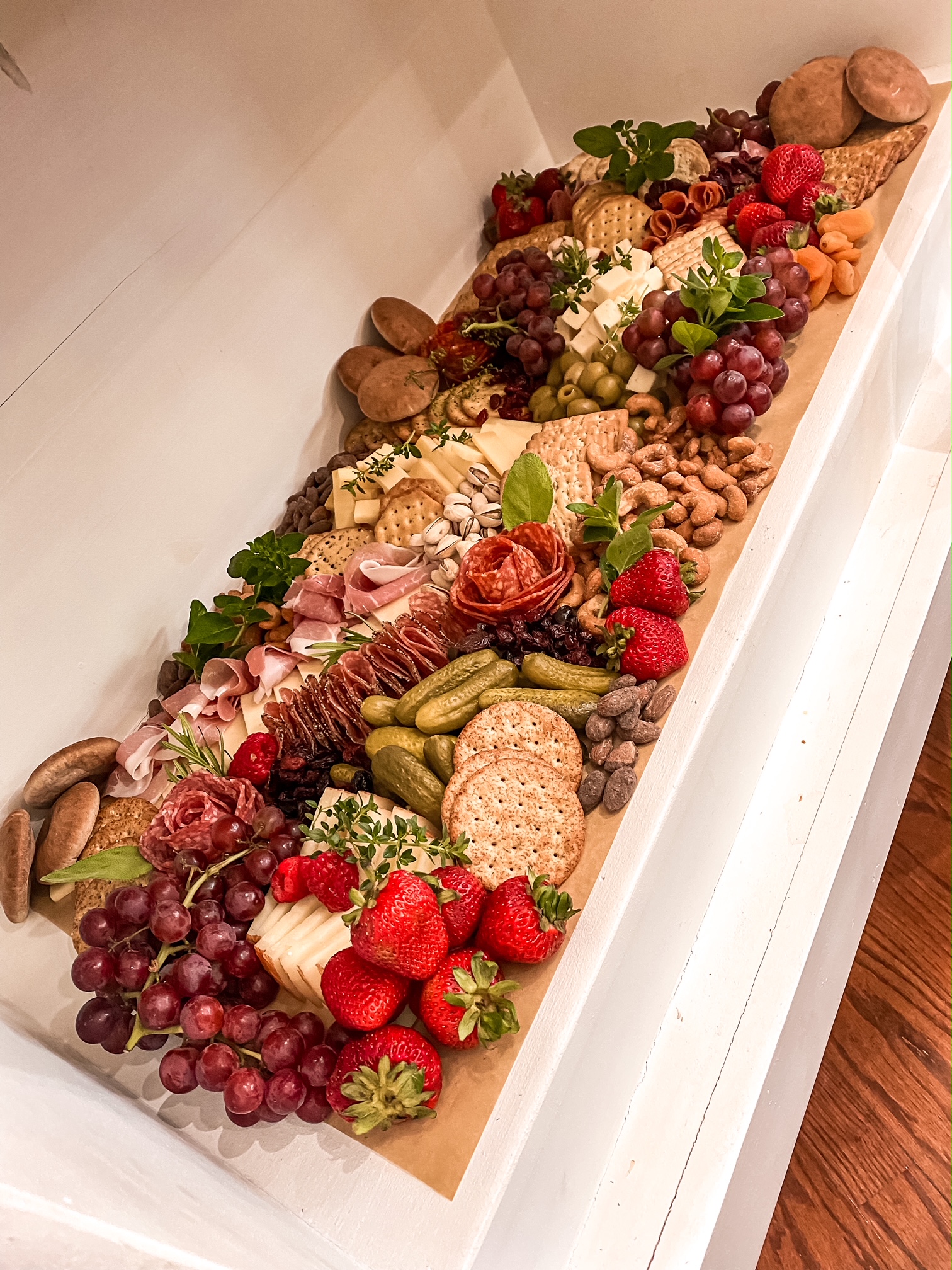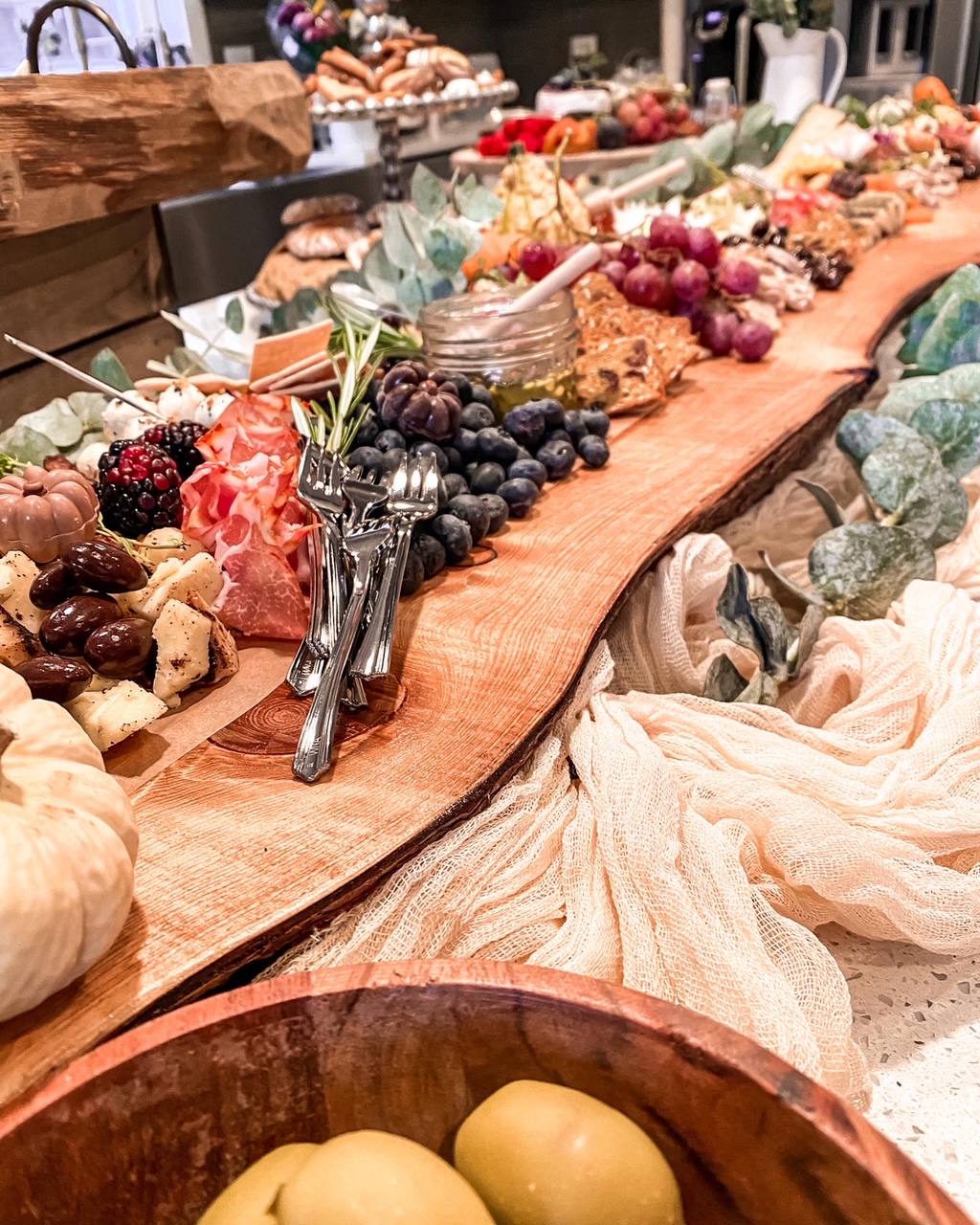 Presenting Tablecuterie, a novel concept from Chewcuterie Grazing Boards that transforms your table into a sprawling gourmet landscape. This edible centerpiece combines the elegance of charcuterie with the conviviality of a shared meal, creating a dining experience that is both visually stunning and gastronomically delightful.
